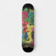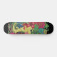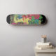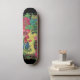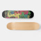 La patineta presenta un diseño visual de mandalas sobre el rostro de una mujer joven. La patineta tiene ilustraciones detalladas de mandalas, que son patrones geométricos y simétricos de origen espiritual y artístico. Estos mandalas están dispuestos alrededor del rostro de una mujer joven. La combinación de elementos, la patineta y el diseño de mandalas sobre el rostro, sugiere una fusión de arte y deporte, dando lugar a una pieza única y creativa.