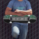 skate personalizado com um design abstrato de onda legal com cores pretas, cinzas e verdes. Personalize o conselho moderno com o texto ou letras desejados. Feita de madeira de carvalho. Também faz um belo presente. Use o modelo para criar seu próprio skate personalizado.