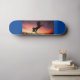 Uma bela fotografia de uma silhueta de um unicórnio que se ergue com o fundo do sol, é mostrada neste skate para vocês apreciarem. Certifique-se de completar o skate adicionando caminhões, rodas e fita de aderência. Faz um presente de excelente para o Natal, o Aniversário, a Graduação e muito mais!