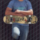 Entra no surreal com este skate único com um palhaço esquelético baleando um céu tempestuoso. Os castanhos e beges mudados evocam vibrações retrorreflectoras que se destacam em qualquer multidão. Perfeito para promissores de emoções e amantes de arte, é mais do que um conselho — é uma declaração de individualidade ousada.