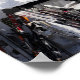Poster de múltiplos esquis que cobrem um bar de esqui de pires na neve numa montanha da estância de esqui Yllas na Lapland, Finlândia.