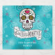 Um design de etiqueta colorido para o Dia das Festividades Mortas, com uma variedade de crânios decorativos de açúcar com sotaques de flores e espirais sobre um fundo azul de turquesa de efeito texturizado. O banner branco, contendo o texto 'Dia de los Muertos', também é opcional e pode ser apagado para usar o rótulo em outras ocasiões. Procure ID725 para ver outras opções de cores e produtos com este padrão divertido.