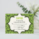 Skulls damask green, padrão negro, cartão de resposta RSVP de casamento de Halloween. Este design formal e elegante apresenta um padrão floral e crânio úmido e uma moldura de marfim no centro. Design clássico, mas contemporâneo, com fonte vintage. Design elegantemente assustador, perfeito para casamentos outono góticos ou de Halloween.