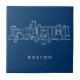 Características deste design um esboço tirado mão da skyline de Boston em um fundo marrom.