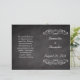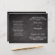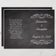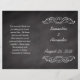 O programa de casamento de aparência de slate chalkboard apresenta fundo de cinza de carvão escuro com efeito de tabuleiro preto e desenho de branco manuscrito escrevendo no primeiro plano. Motif de espiral decorativa adiciona um toque de elegância casual. Todos os Designs Copyright © 2013 www.CustomInvitesOnline.com