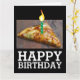 PIZZA SLICE COM PLACA DE CANDELA. FELIZ ANIVERSÁRIO. COM TODAS AS COISAS!"