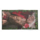 SlipperyJoe masculino peito seis maços estômago nu torso homem coberto por Santa chapéu branco casaco vermelho canas de doces listrados brilhando caixa de presente de Natal verde festivo galhos de árvores coloridas luzes e cintilantes confetes artísticos girando gulipas LGBTQIA