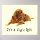 Ouro Retriever Pintando Cachorro Engraçado Slogan Humor Poster. Todos sabemos que é a vida de um cão! Mas aqui está uma maneira de juntar consolo e humor. A maneira perfeita de confortar um amigo. Personalize alterando a cor de fundo e adicione seu próprio texto para criar um poster personalizado para amantes de cães e aqueles que precisam de consolo. Retriever ouro criado usando aquarelas, canetas e tinta em papel de aquarela. Ilustração da artista Catherine Sweetman