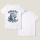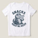 Retro engraved cartoon alligator holding a cookie with the phrase “Snacks Make Me Nicer”. Dark vintage line art style with bold typography, perfect for funny food quotes, animal lovers, and sarcastic humor designs.