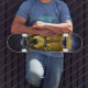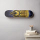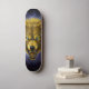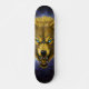 Unleash the wild on the streets with this captivating skateboard deck design featuring a ferocious, snarling wolf head. Rendered in a stunning dark fantasy illustration style, every detail of its textured fur is brought to life, culminating in piercing, electric blue glowing eyes that command attention. Set against a mystical backdrop of a cosmic nebula swirling with deep purples and blues, this design evokes raw power and otherworldly energy. Perfect for riders who embrace their inner beast and want a board that truly stands out from the pack. Ride with the spirit of the wolf.