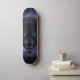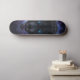 Unleash the wild on the streets with this captivating skateboard deck design featuring a ferocious, snarling wolf head. Rendered in a stunning dark fantasy illustration style, every detail of its textured fur is brought to life, culminating in piercing, electric blue glowing eyes that command attention. Set against a mystical backdrop of a cosmic nebula swirling with deep purples and blues, this design evokes raw power and otherworldly energy. Perfect for riders who embrace their inner beast and want a board that truly stands out from the pack. Ride with the spirit of the wolf.