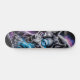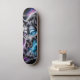 Unleash the wild on the streets with this captivating skateboard deck design featuring a ferocious, snarling wolf head. Rendered in a stunning dark fantasy illustration style, every detail of its textured fur is brought to life, culminating in piercing, electric blue glowing eyes that command attention. Set against a mystical backdrop of a cosmic nebula swirling with deep purples and blues, this design evokes raw power and otherworldly energy. Perfect for riders who embrace their inner beast and want a board that truly stands out from the pack. Ride with the spirit of the wolf.