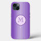 Um elegante cobrir de dispositivo com um padrão de cores roxo de listas roxas e um monograma personalizado que você pode personalizar. Essas listras finas são feitas de listras mais finas e as do centro são mais leves que as das pontas, criando uma ilusão de brilho chico. Roxo é uma cor de realeza ou status, confiança, magia, mística, independência, riqueza e sucesso.Roxo é a primeira cor a ser sintetizada na Europa 1856 e aparece nas paletas de alguns dos Impressionistas Franceses. Design original de listras roxas monograma por M Sylvia Chaume, Canadá. Por favor, visite-me no Twitter @Sylvia_FineArt. Tenha um dia feliz!
