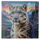 Leopardo-da-neve em flores silvestres num vale cercado por Mountain AI art por minx267