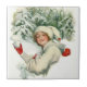 Esta design apresenta uma ilustração do artista americano Harrison Fisher (1877-1934). Ele retrata um menino de bochecha rosada segurando uma bola de neve em sua mão. Ele está vestindo um casaco branco e um chapéu para o inverno, e ele tem luvas vermelhas em suas mãos. O menino está prestes a jogar a bola de neve. Ele está feliz e sorrindo. Há neve cobrindo as árvores de Natal na paisagem atrás dele.