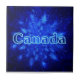 Um tema vitorioso com um enxame de flocos de neve fractais azuis. A leitura de texto "Canadá" aparece em azul e branco brilhantes.