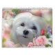 Este calendário caracteriza Snowdrop, um cão maltês pequeno doce com imagens sazonais bonitos e coloridas.
