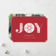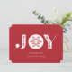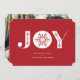 Este simples, mas elegante cartão de feriado apresenta JOY com um floco de neve exclusivo no centro. Personalize-o para alterar a cor de fundo! Adicione uma foto de família ao verso ou exclua a foto de natal e adicione seu próprio cartões de natal personalizado.