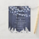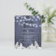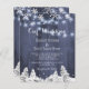 Barato de na moda de orçamento elegante e russo para o casamento no inverno de convite para modelo sobre madeira azul-celeiro marinho com pinheiros nas redondezas do país, flocos de neve brancos e cordas de luzes cintilantes. +++++++++++ Fácil de personalizar com seus detalhes. ++++++++++ O convite é adequado para montanhas russas elegantes de inverno marinho casamentos brancos azuis. ++++++++ Se precisar de assistência com alterações no design, contacte o designer através do botão MENSAGE abaixo!