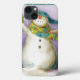© Lisa Audit/Wild Apple. Este boneco de neve está vestindo luvas de inverno e um cachecol verde com bolinhas. A imagem é unida por flocos de neve ao longo dos lados.