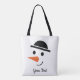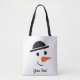 Snowman de chapéu de boliche Face Design Tote Bag com a sua escolha de texto, ou sem texto.