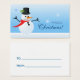 Um brinde com um bonitinho bonitinho de neve vestindo um cachecol vermelho e um chapéu preto em um fundo azul esmaecido, que está desfrutando da temporada de inverno enquanto flocos de neve de diferentes formas continuam caindo. Presente ideal para o Natal ou qualquer outra ocasião. © Manhã 6