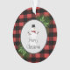 Decorem sua árvore neste feriado com um Ornamento de Xadrezes de Búfalo Vermelho Snowman. Design de ornamento apresenta uma caixa adornada com galhos de pínus e bonitinho bonitão de neve contra um fundo de xadrez de búfalo. Itens adicionais de presentes e feriados disponíveis com este design também.