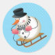 Snowman Sled Sled Adesivos brilhante de 3 polegada