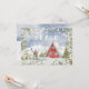 Este cartão de saudação de inverno adorável apresenta uma cabana vermelha, com quadro A, na neve de inverno, com texto que diz "PEACE". As costas têm uma colina de neve com espaço para escrever na sua própria mensagem.