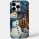 Um boneco de neve quente e alegre cumprimentando transeuntes com um sorriso amigável, espalhando a alegria do inverno e trazendo sorrisos e prazer a todos que o encontram.