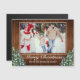 Cartaz de saudação de Natal com sua foto. Madeira marrom russa, fundo nevando e floresta nevada. Cozy Vintage country. Há mais itens disponíveis neste estilo na nossa loja. Você pode editar a design, alterar cores, fontes e adicionar texto extra clicando no link "personalizar mais".