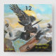 Linda natureza desenhada relógio de uma águia soprando sobre montanhas e verificando seus bebês. Este relógio projetado incrível vai excelente em qualquer sala.