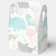 Sob o mar, as caixas de favores apresentam uma baleia, tubarão-tigre, geleia, tartaruga marinha e cavalo-marinho, conchas e estrelas-do-mar.