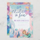 Mergulhe em uma celebração mágica submarina com nossos encantadores convites de aniversário de sereia 'Sob o Mar'! Perfeito para o seu aniversário de sereia, essas bonitas cartas de festas de sereia são um sucesso para qualquer festa de sereia. Adorados com criaturas marinhas caprichosas, cartões de princesa oceânica, e uma sereia bebê divertida, nossos cartões de aniversário são um tesouro de prazer marinho. Criado com amor, cada convite apresenta uma deslumbrante festa de cauda da sereia convidando design que certamente atrairá seus convidados. Ponha o tom para um dia inesquecível com os convites para a sereia de aniversário da nossa menina, cheia de matizes pastéis e de delicados motivos marítimos. Estes cartões de aniversário da criatura marinha não só são adoráveis como também são fáceis de personalizar com seus detalhes em meio às bolhas e corais. Para os pais que buscam criar um conto de fadas submarino, esses pequenos convites para temas de sereia servem como o farol perfeito. Com cada detalhe cuidadosamente colocado, desde o sorriso gracioso da sereia até a flora festiva do mar, seus hóspedes ficarão encantados a partir do momento em que puxarem essas pérolas oceânicas de seus envelopes. Faça um salto com estes deliciosos convites sob o mar e dê à sua pequena sereia uma celebração que seja tão mística e memorável como as profundezas do próprio oceano.