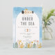 Criaturas marinhas e um fundo azul-d'água fazem um legal convite de aniversário "sob o mar"!