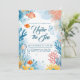 Faça um salto com isto sob o convite da Bash de Aniversário do Mar! Apresentando um charmoso design de aquarela de recifes de corais vibrantes, bolhas lúdicas e adoráveis peixes tropicais, este convite dá o tom para uma celebração mimológica do tema do oceano. As matizes azuis macios e pop brilhantes de laranja e amarelo criam uma vibração aquática convidativa perfeita para aniversários infantis ou festas ao ar livre. A área do centro espaçosa oferece amplo espaço para personalizar com seus detalhes de eventos. Quer você esteja planejando um primeiro aniversário, uma praia de verão, ou uma festa de aventura submarina, esta modelo é uma maneira divertida e alegre de convidar convidados. É excelente de convites imprimíveis ou e-vites digitais e funciona lindamente com décor de festas com tema do mar. Que o seu grande dia se sinta como um mergulho no fundo do mar em diversão e memórias!
