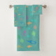 Anime o seu banheiro com esta adorável toalha de paisagem. Os peixes misturam-se com tartarugas, cavalos-marinhos, lagostas - e até mensagens numa garrafa. Linda cor lacrimogênea com vida marinha multicolor. Calmo e tranquilo!