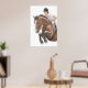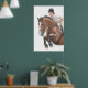 Design de arte original de um cavalo saltante e cavaleiro pela artista equina Carolyn McFann do Two Purring Cats Studio sobre uma poster de arte de qualidade para amantes de cavalos. Escolha o tamanho e o preço do poster.