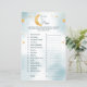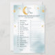 Folha de chá de fraldas divertida com o tema "Sobre a Lua". Apresentando o clássico jogo de chá de fraldas "Adivinha o Preço". Um jogo fácil e divertido para os convidados jogarem no chá de fraldas. Você pode editar ou personalizar as instruções e a lista de produtos.