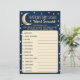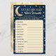 Este jogo "sobre a lua" é perfeito para qualquer um que tenha um chá de fraldas este ano. A design apresenta uma lua ouro com estrelas sobre um fundo de cor azul-água marinho e uma formulação de modelo fácil de personalizar. Basta dar esses lençóis aos seus convidados para jogar no chá, quem desembaralhar as palavras primeiro, ganha um prêmio da sua escolha! Respostas: 1) Fralda 2) Chá de fraldas 3) Esfregaço 4) Enfermeiro 5) Cobertura 6) Pacificador 7) Ponto único 8) Transbordo 9) Atividade Mat 10) Mistura 11) Bassinet 12) Frasco 13) Bovinos