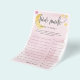 Divirta-se no seu chá com esta atividade fácil! Compre 10 itens de bebê e mostre-os em uma mesa para este jogo de adivinhação de preço divertido. Não se esqueça de salvar o recibo! Peça aos hóspedes que adivinhem o preço e que o registrem no cartão. Aumente os preços para encontrar seu vencedor! Adicione seu texto personalizado usando o formulário modelo. Use o papel de valor para facilitar a gravação.