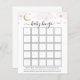 Placa de bingo chá de fraldas com nuvens cor-de-água rosa e estrelas douradas. Uma maneira divertida de interagir com os convidados do chá enquanto a mamãe a ser abre seus presentes.