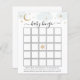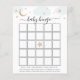 Placa de bingo chá de fraldas com nuvens de cinza aquática e estrelas douradas. Uma maneira divertida de interagir com os convidados do chá enquanto a mamãe a ser abre seus presentes.