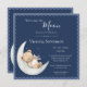 Estamos sobre o convite para chás de fraldas sobre o tema da lua. Um urso de pelúcia desenhado à mão adormecido a dormir numa lua. O fundo azul marinho dá o tom para um doce chá de fraldas temático neutro em gênero. Um convite tão doce e simples para esse evento especial. Coordenar o quadro azul escalado termina este adorável convite.
