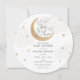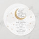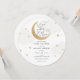Chá de fraldas com nuvens de cinza d'água e estrelas com lua de ouro e roteiro divertido "Estamos sobre a lua!" Personalize com suas informações ou clique em "clique para personalizar mais" para ajustar o tipo de fonte, o tamanho e a cor.