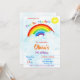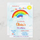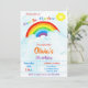 Pelo convite de aniversário do arco-íris Convite de aniversário mágico para garoto ou garota Convite colorido. Convide seus amigos para uma festa mágica com este brilhante e colorido arco-íris de convite divertido! Este convite do tema do arco-íris azul apresenta arco-íris, sol e algumas nuvens ao redor. Simplesmente edite este menu de personalização fácil de usar modelo para torná-lo especial.