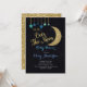Sobre o convite do chá de fraldas da lua para uma menina ou um menino com uma lua, umas estrelas, e um brilho bonito do ouro do falso.
