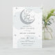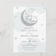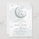 Convite para chá de fraldas com lua de relíquia prateada e roteiro divertido "Estamos sobre a lua!" Personalize com suas informações ou clique em "clique para personalizar mais" para ajustar o tipo de fonte, o tamanho e a cor.