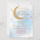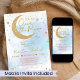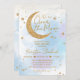 Bem-vindos a vocês e comemorem os pais para estarem com este convite divino com lua de ouro e estrelas e nuvens. Esta é uma design perfeita para chás de fraldas neutros em termos de gênero e muito mais!