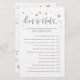 Este cartão de jogo de chá de fraldas apresenta um roteiro moderno sobre fundo branco com cinzas e estrelas douradas, perfeito para um bebê, uma menina ou uma surpresa! Use este cartão para sua festa de revelação de gênero!